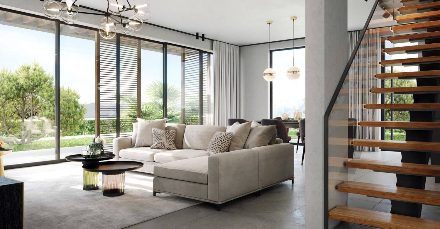 All villas are equipped with a modern Smart Home system, which allows you to control curtains, air conditioning, underfloor heating, and video surveillance from your smartphone. An optional furniture package, priced at €65,000, is also available.