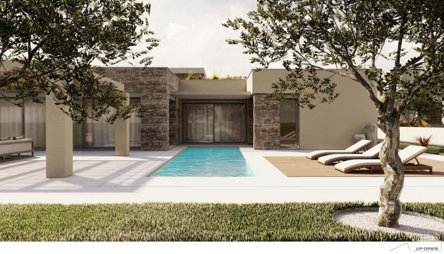 This high quality villa for sale in Platanias, Chania Crete is under development at the moment and it is set in the beautiful costal village of Pyrgos Psilonerou, just 15 kms west from Chania center. The beach can be reached in a couple of meters,as all kind of amenities. It is arranged over 1 level with the total living space of 120sqms and it will include 2 bedrooms and 3 bathrooms.The villa will have a basement too, which can be used as TV, playroom, a gym or even an extra bedroom. Modern designs with attention to detail and high quality construction material are the main features of this property.