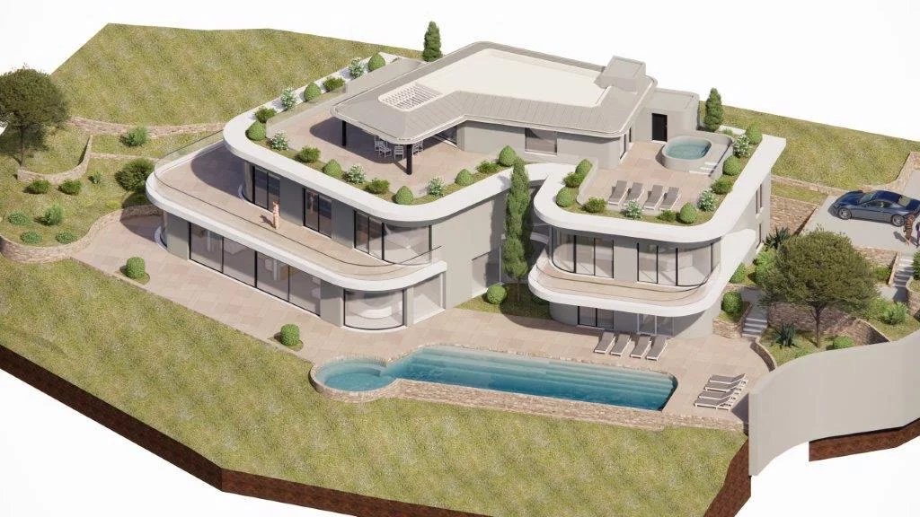 in a calm and privileged setting, within a landscaped plot of approximately 3800 m2, the approved permit includes spacious terraces offering beautiful views of the Mediterranean and Monaco, an underground garage for 7 to 8 cars, an infinity pool, and a landscaped garden.