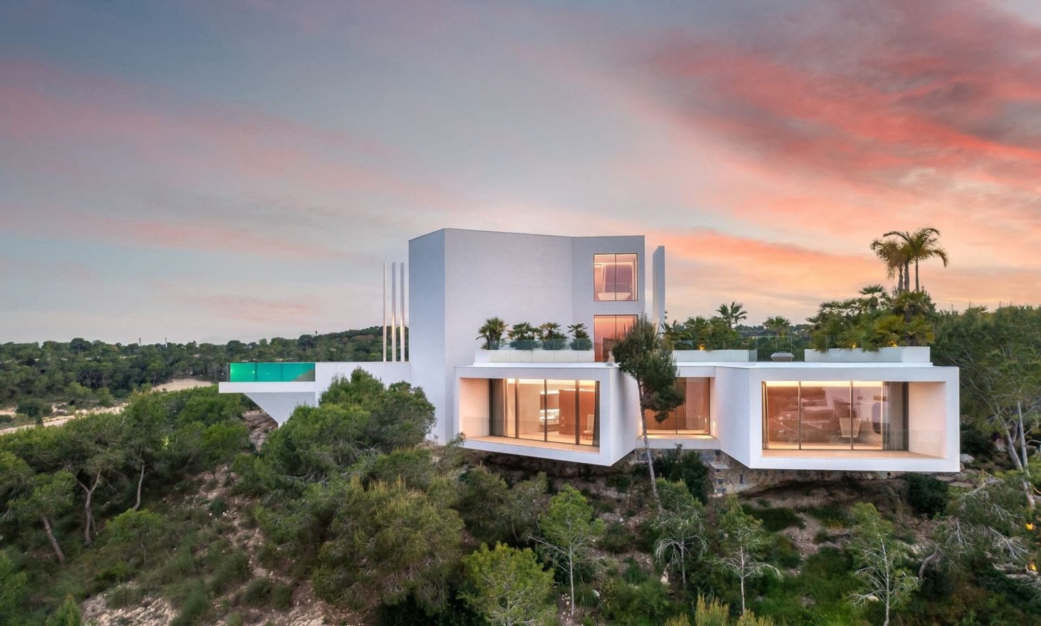 With a striking seven-meter-high glass façade, this exceptional designer villa offers breathtaking panoramic views of the golf course, lush natural woodlands, and the sea. Its stunning two-story, aquarium-style glass infinity pool seamlessly merges indoor and outdoor spaces, creating a harmonious connection with nature and the surrounding environment. As the villa with the most spectacular views in Las Colinas, it sets a new benchmark for luxury living.This exclusive three-bedroom villa features two independent yet interconnected self-contained suites, each with its own private bathroom and kitchenette, providing guests with the perfect balance of privacy and comfort. The property boasts outstanding amenities, including a 240 m² terrace with sweeping 160-degree views, a private gym and spa with a jacuzzi and sauna, beautifully landscaped gardens, and the option for separate staff quarters.