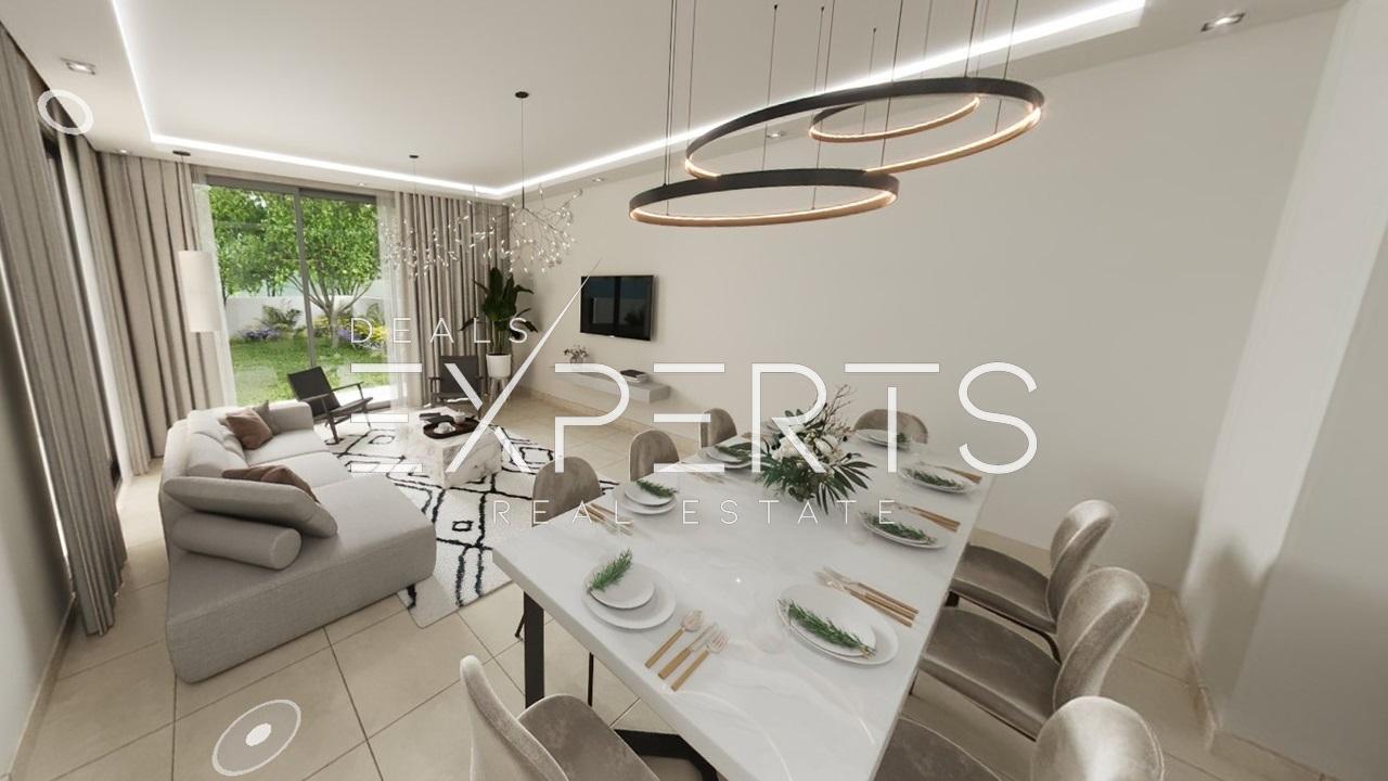 The duplex is designed with an open-plan layout, creating a seamless flow between the living, dining, and kitchen areas. Large windows bring in natural light, creating a bright and airy atmosphere. The **private garden** is perfect for outdoor relaxation, while the **study** offers an ideal space for home offices or additional storage.