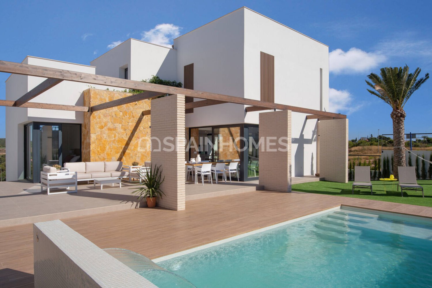 Detached Properties with 4 Bedrooms and Luxury Design in OrihuelaThe ground floor of the properties consists of a bedroom with a fitted wardrobe and en-suite bathroom, a shared bathroom, an open-plan kitchen with an island feature, a dining area, and a spacious living room with large windows.