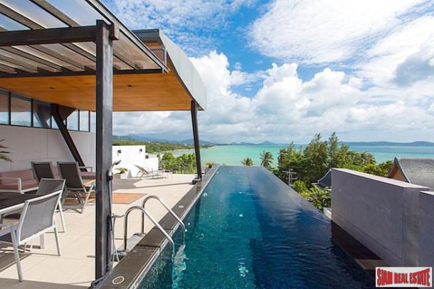 This three bedroom pool villa is situated on the corner unit with a 130 degree sea-view. The best open view in the whole compound!The fantastic home is spread over four levels of elegant living. Starting at the rooftop there is a huge covered terrace that faces the 14m x 2.5m infinity swimming pool. The terrace contains an outdoor kitchen, sala, barbeque area, outdoor dining and sun loungers.