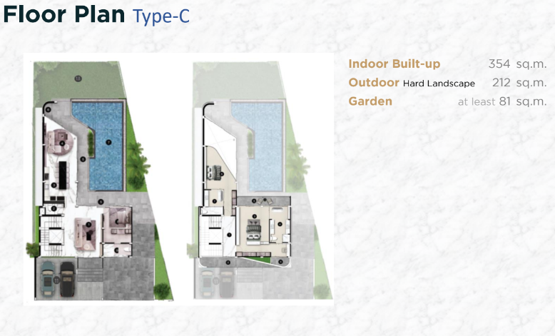 Standard villa will be finished with swimming pool, air-conditioners, built-in wardrobe,main kitchen, and Landscape design.