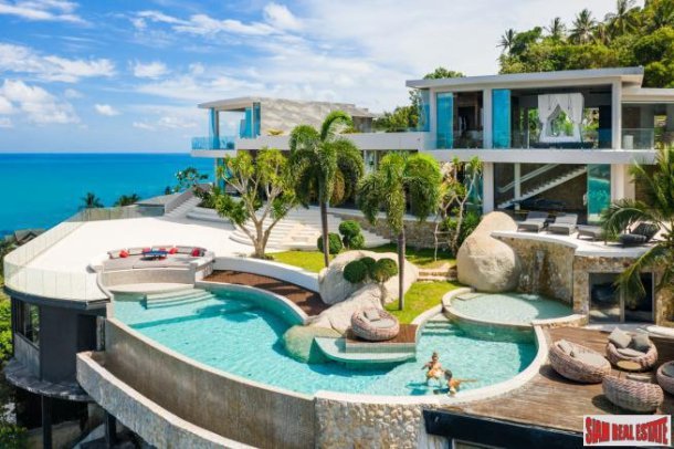 A magnificent sprawling estate awaits you in one of Samuia€™s most prestigious neighbourhoods. Perched high above the striking blue waters of Chaweng Noi, this property dominates the hillside with its 3,600m2 plot and breathtaking panorama. Designed with only the finest building materials by an award-winning German designer, the blend of modern design and local natural aesthetic has been implemented with attention.Privacy assured for you and your guests as you relax inside or on the sizeable outdoor deck. The close-up sea view will inspire every time and both Chaweng and Chaweng Noi beach can be seen in great detail below. To the rear, there are beautifully kept gardens with tropical plants, flowers and the visible natural rocky features of the natural landscape. The villa has been designed to be bright and airy with plenty of glass and sliding doors so that occupants can stay comfortable throughout the day.