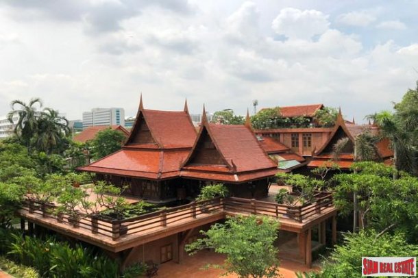 A Traditional Thai Style house made with teak wood surrounded by spacious garden and pond is for sale in the Laksi area of Bangkok. The home is a very spacious 1,800 sqm, with the land plot at 680 sq.wa. This is a private residence with ultimate style.The house comprises of three connecting buildings that has six bedrooms, all with ensuite bathroom. There is a separate kitchen, semi-outdoor pavilion, parking and a maids room.