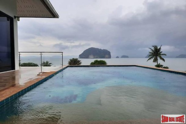 A beautiful bay view three bedroom home for sale near Tha Lane Bay, just 10 minutes to Koh Yao Noi by long tail boat. Enjoy uninterrupted sunset views and exceptional karst island views from most rooms in the home.The pool is the highlight of the home, it seems to spill out to the sea. Adjacent to the lounge it has a nice terrace with sala and daybeds. The lounge area is very spacious and has several sitting areas and a beautiful wood dining set that seats six. High ceilings and large windows give the home an open and relaxed feeling.