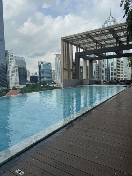 Located within the prestigious Sindhorn Residence, this 1-bedroom, 1-bathroom unit offers 70 square meters of elegantly designed living space.The unit comes fully furnished with built-in features, providing a seamless blend of style and convenience. The living room is furnished with a comfortable sofa, creating a cozy area perfect for relaxation or entertaining guests. Large windows invite natural light into the space, while the adjacent balcony offers stunning city views, making it an ideal spot to unwind.