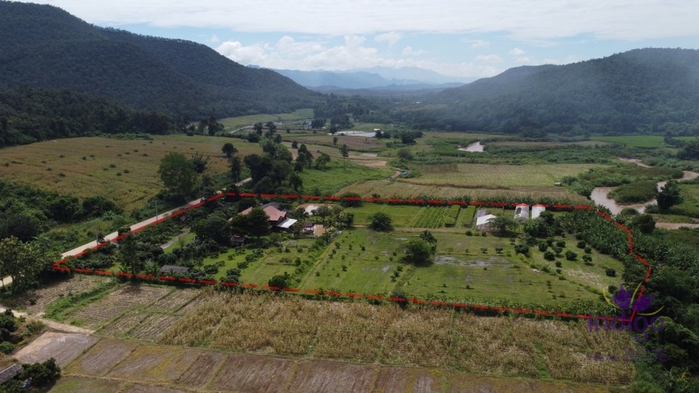 Wonderful countryside farm house on the Ping River surrounded by mountains view! This Thai wooden home is built to take in views of surrounding countryside. It's perfect if you're looking for a home in beautiful Chiang Dao with a working farm. There is also lots of potential for a resort, homestay, farm stay or camping business. The house is on a large property of 12 rai 99.5 wah and is right on the banks of the Ping River. In the cool season, the temperature can get as low as 9 degree celsius. Large Thai paduck and redwood home (approx 500sqm in living space) featuring:- 4 bedrooms / 3 bathrooms- Large open plan open air living area with a large carp pond and kitchen downstairs. This area under the house is very comfortable and breezy, ideal for relaxing with friends. - 2 balconies upstairs. The large main balcony overlooks the farm, fish pond and has wonderful countryside and farm view. Perfect for a morning coffee, yoga or meditation.- Large open plan living area- Beautiful and spacious master bedroom that opens out to the balcony. There is also an ensuite bathroom with a special shower/bathtub/spa unit. Other features:- Camping area with camp fire / BBQ area and a firepit to warm you up during the cool winter.- Bathroom/washing zone for camping guests with showers and toilet.- There are are 2 other bungalows on the property.- 2 large fish ponds & 1 extra pond being used as a water reservoir- The farm has many fruit trees including melon fields, longan, banana, passionfruit. There is also rice paddy fields and corn fields. There is also chicken and pig pens. Ideal if you'd like to have a sustainable living lifestyle, grow your own organic fruits and vegetables. The farm is already set up and running so you can get produce straightaway. Peaceful location yet still very convenient!- The property is located on a good road.- Shops in the area include: 7-11, grocery stores, flea market. They are all within 10 min from the property. - 20 min drive to Chiang Dao Hospital- 27 min drive to Chiang Dao Hotsprings- 23 min drive to Chiang Dao Town Bus Station- 2 hours drive to Chiang Mai International AirportPlease contact us for more information or to view.