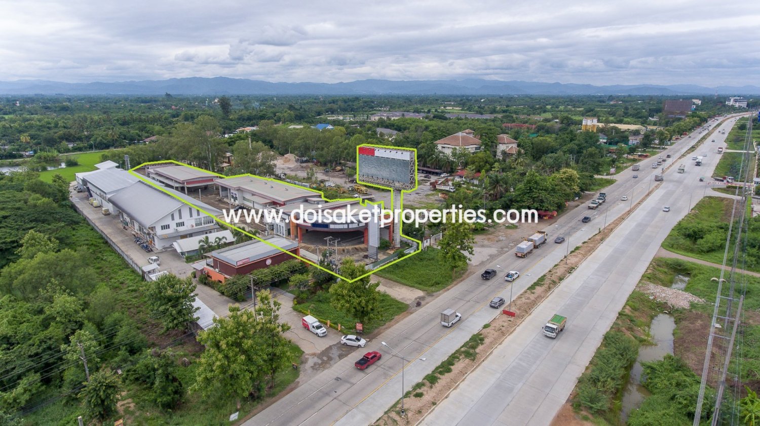 (CMS020-03) Large ~4 Rai Commercial Property with Direct Frontage on Route 11 SuperhighwayPrice: 75,000,000 THB (Tax and transfer fee 50/50) Total Land Area: 3 Rai 3 Ngan 55.2 S.qw. (6,220.8 m2)Total Building Area: ~1,964 m2Doi Saket Properties is happy to offer for sale this large and well-located commercial property on nearly 4 rai of land with more than 30 meters of direct frontage on the Route 11 Superhighway. Previously a new car/truck dealership and service center, the property is suitable for many commercial enterprises including:- New car/truck dealer and service center