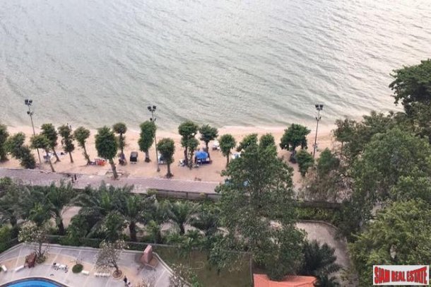 Stunning Sea Views and Sunsets from this two bedroom condo for sale in the View Talay. The apartment comes with a large open living space with sofa, TV, dining set that seats four and a good size western kitchen. The kitchen has a wrap around design with lots of white cabinets and counter space. There is a window over the sink that highlights the sea views.The living area leads out to a nice balcony with a sun lounger and chair swing. From here the sunsets and ocean can be viewed while enjoying the sea breezes.