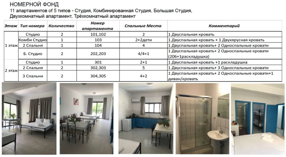 Продается отель площадью 730 кв.м В Пафосе. Отель расположен на 2уровнях. Второй этаж состоит из 7 спальных комнат, 4 гостиных с кухней, 2 гостиных, 6 душевых комнат. Третий этаж состоит из 11 спальных комнат, 5 гостиных с кухней, 5 душевых комнат. У объекта есть солнечные батареи для нагрева воды, кондиционер. Недвижимость продается с мебелью. К недвижимости относится парковочное место, сад. В распоряжении владельцев общий бассейн на территории. Апарт-отель великолепно расположен в центре Пафоса, в нескольких минутах ходьбы от оборудованных пляжей, торговых центров, туристических и исторических достопримечательностей. Напротив входа в апарт-отель находится автобусная остановка. Оттуда менее чем за 1 час можно добраться до таких знаковых мест, как Камень Афродиты, Коралловый залив и горы Троодос. Также очень важно, что от апарт-отеля можно легко добраться из аэропорта на общественном транспорте всего за 30 минут. Конкурентные преимущества:* Бассейн - в этом сегменте и месте это уникальное преимущество, которое отсутствует у всех конкурентов.* Благодаря комбинированному использованию сезонных цен и целевого потребителя, загрузка ATHINAS COURT составляет 75% от количества комнат в среднем за год.* Более высокие доходы, поскольку реализация идеи «Отель без персонала» и высокая автоматизация бизнес-процессов значительно сокращают постоянные затраты. Перспективы:Правительство Республики Кипр с 2020 года внесло ряд изменений в туристическое законодательство страны. В частности, теперь разрешено переоборудование подвалов в жилые помещения для размещения туристов. Это позволяет оборудовать в отеле еще четыре двухместных номера хостельного типа.Таким образом, выручка вырастет на 31%, что может принести дополнительный доход. В 2021году в соответствии с новым законом появилась возможность надстроить ещё один этаж. Это позволит увеличить номерной фонд на 12 двухместных номеров, что даст прирост выручки.