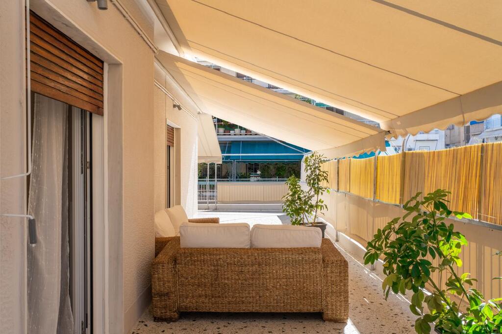 Продается квартира площадью 98 кв.м в Афинах. Квартира расположена на четвертом этаже и состоит из 2 спальных комнат, гостиной, одной кухни, одной столовой, одной душевой комнаты, одного санузла, одной кладовой.Квартира имеет угловое расположение. Из окон открывается великолепный вид на город. У объекта есть солнечные батареи для нагрева воды, кондиционер, тенты, отопление. Недвижимость продается с мебелью. В здании расположен лифт. У объекта недвижимости есть сад на крыше. К недвижимости относится парковочное место.