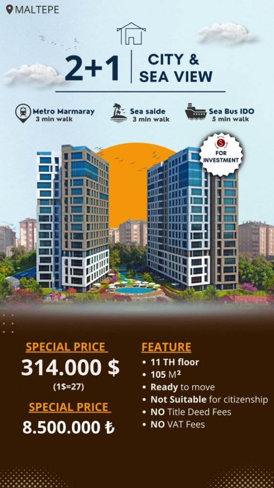 Квартира с 2 спальнями в Малтепе, Турция №15100