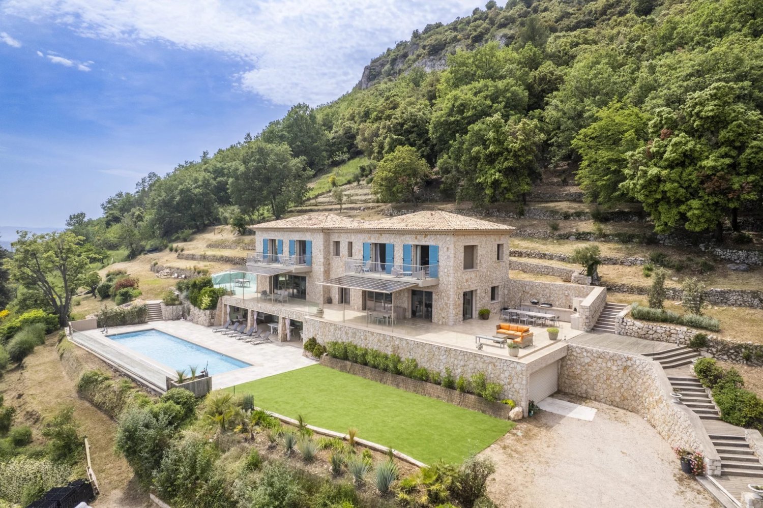 Каменная вилла с бассейном и панорамным видом на море в Туррет-сюр-ЛуЭта красивая каменная вилла была построена в 2011 году в стиле традиционной прованской архитектуры с современным уклоном. Отсюда открывается панорамный вид на океан и горы от Кап-Ферра до массива Эстерель. В доме более трех этажей и есть лифт. Современная большая гостиная плавно переходит в столовую, а затем в просторную кухню. Вдоль всего пространства тянутся панорамные окна во весь рост. В каждой из четырех стильных соседних спален есть балкон, выходящий на фантастический огромный парк и бассейн длиной 18 метров с подогревом, у которого расположен полностью оборудованный домик площадью 60 квадратных метров. В нем имеется кухня, обеденная зона и зоны для барбекю и отдыха. Вилла Rosa находится в невероятно тихом и престижном месте в окружении красивой природы, откуда открывается вид на городок Туррет-сюр-Лу, находящийся в 10 минутах ходьбы.
