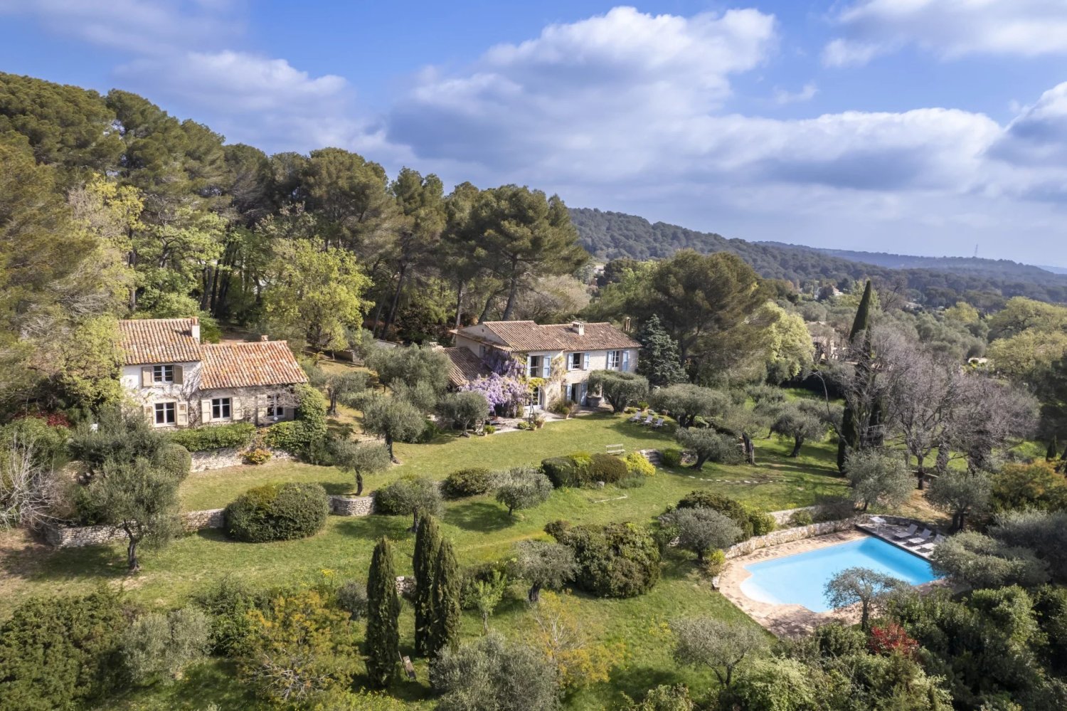 Это исключительное поместье состоит из трех каменных зданий, откуда открывается захватывающий вид на Мужен и море. В главном доме есть большие светлые помещения, двойная гостиная, полностью оборудованная кухня и четыре спальни. Отдельная гостевая вилла с четырьмя спальнями обеспечивает полную приватность. Дом смотрителя гарантирует индивидуальное обслуживание и повышенную безопасность. Частный бассейн, гараж и многочисленные парковочные места дополняют эту редкую недвижимость.